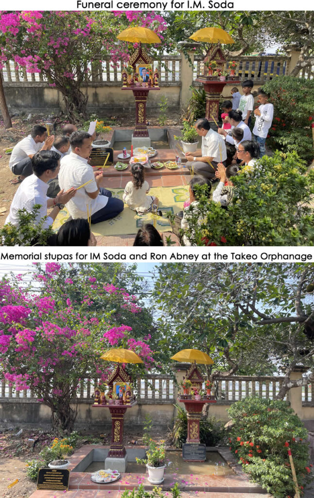 We at RAEF were greatly saddened by the unexpected passing on December 5, 2024, of our long-time Cambodian Director and friend, I. M. Soda. Soda became a close friend of Ron Abney after the two met in 1994 when Ron was working in Cambodia for the International Republican Institute. It was Soda who introduced Ron to the children at the Takeo Orphanage. After Ron passed in 2011, Soda agreed to serve as the Cambodian Director for the Ron Abney Educational Fund, established in my dad’s memory in 2013. Soda’s untiring efforts enabled dozens of Takeo orphans in the ensuing years to register at the university of their choice and pay for their tuition and books. To honor our dear friend, the Board members of RAEF personally provided the funds to conduct an on-site Buddhist funeral ceremony for Soda and inter his ashes in a stupa constructed on the orphanage grounds. Rest in peace, Soda. You will be sorely missed.